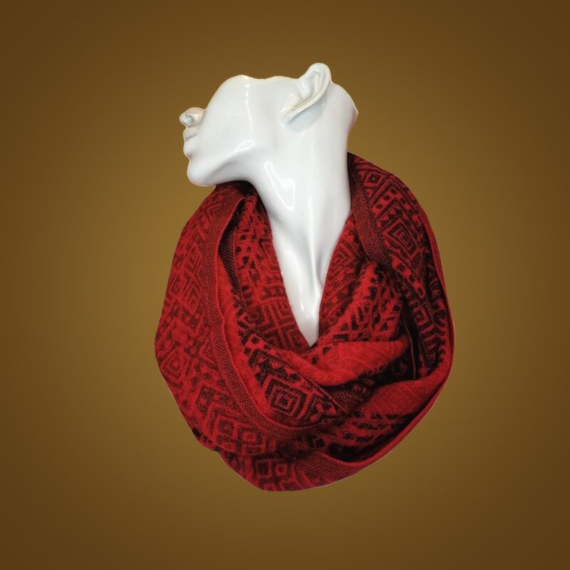 100% Alpaca Dimensioni: ad anello col. rosso Cura del prodotto: Il lavaggio a mano deve essere eseguito con acqua tiepida (30°) si raccomanda l'utilizzo di un detergente delicato. Risciacquare bene il prodotto , asciugare il capo in orizzontale, non utilizzare asciugatrice. Stirare: usare impostazione lana, evitare pressioni e temperature estreme.