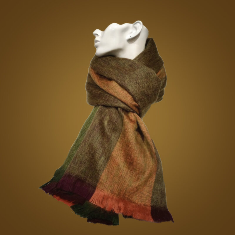 100% Alpaca Dimensioni 180x70 Cm. col. fascie verde/arancio Cura del prodotto: Lavaggio a secco, si consiglia un servizio di pulizia professionale .