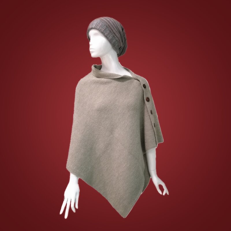 100% Alpaca coprispalle con bottoni col. tortora Cura del prodotto: Il lavaggio a mano deve essere eseguito con acqua tiepida (30°) si raccomanda l'utilizzo di un detergente delicato. Risciacquare bene il prodotto , asciugare il capo in orizzontale, non utilizzare asciugatrice. Stirare: usare impostazione lana, evitare pressioni e temperature estreme.